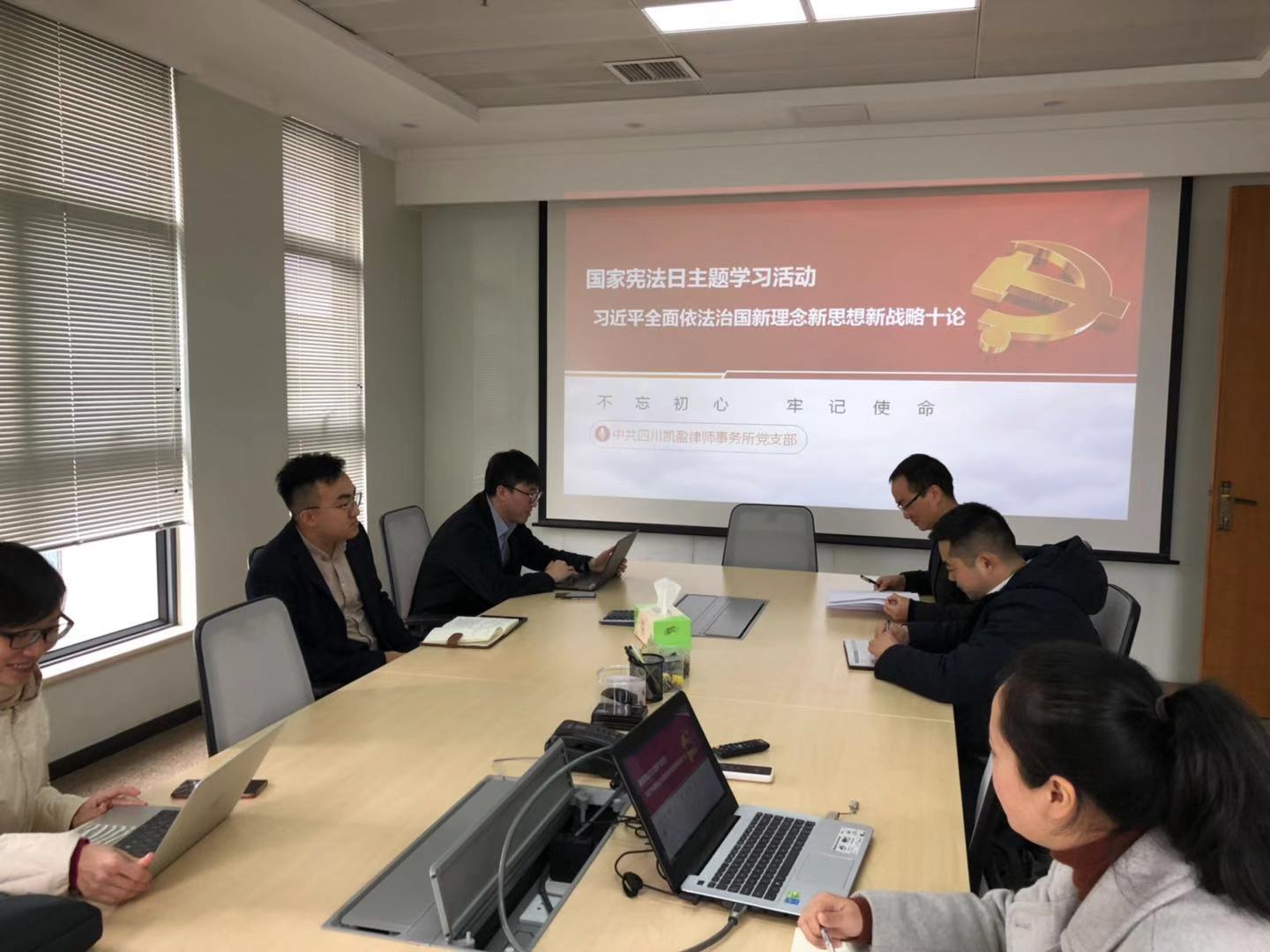 为学习宣传贯彻习近平新时代中国特色社会主义思想,增强党员法治意识。本月,凯盈所党支部开展了国家宪法日主题学习活动。不忘初心牢记使命,高举中国特色社会主义伟大旗帜,贯彻学习党的先进思想,坚持拥护党的指挥方针。