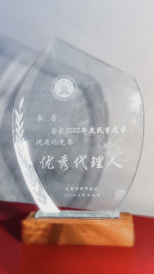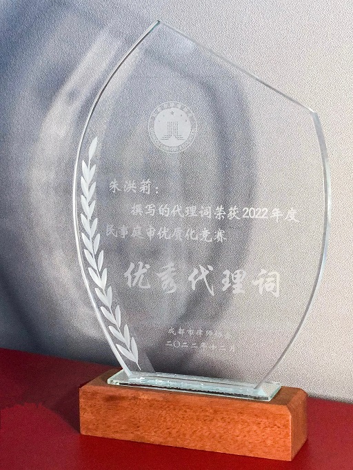 近日,成都市律师协会举行的2022年度民事庭审竞赛圆满结束,本次竞赛共217件民商事审判类型案件、460位案件代理人参赛,经过长达10个月的比赛,我所律师在众多参赛选手中脱颖而出,廖蕾律师获得优秀代理人、优秀代理词奖,朱洪莉律师获得优秀代理词奖!